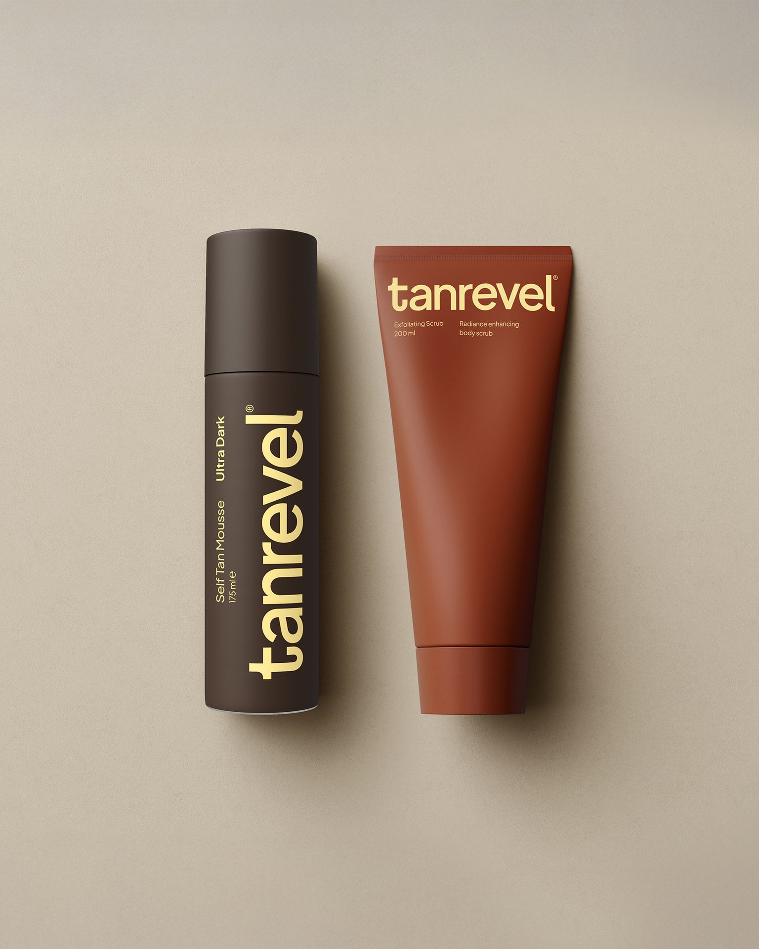 Create the perfect sun-kissed look with Tanrevel® Prep & Tan Duo Ultra Dark– a tailored kit featuring two carefully selected products that complement each other, giving you a flawless and long-lasting self-tanning result.